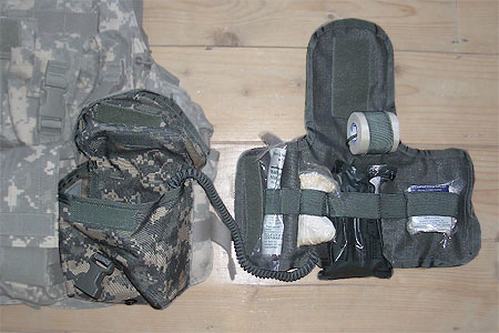 Pictured is the new Improved First Aid Kit (IFAK) in its ACU pouch.